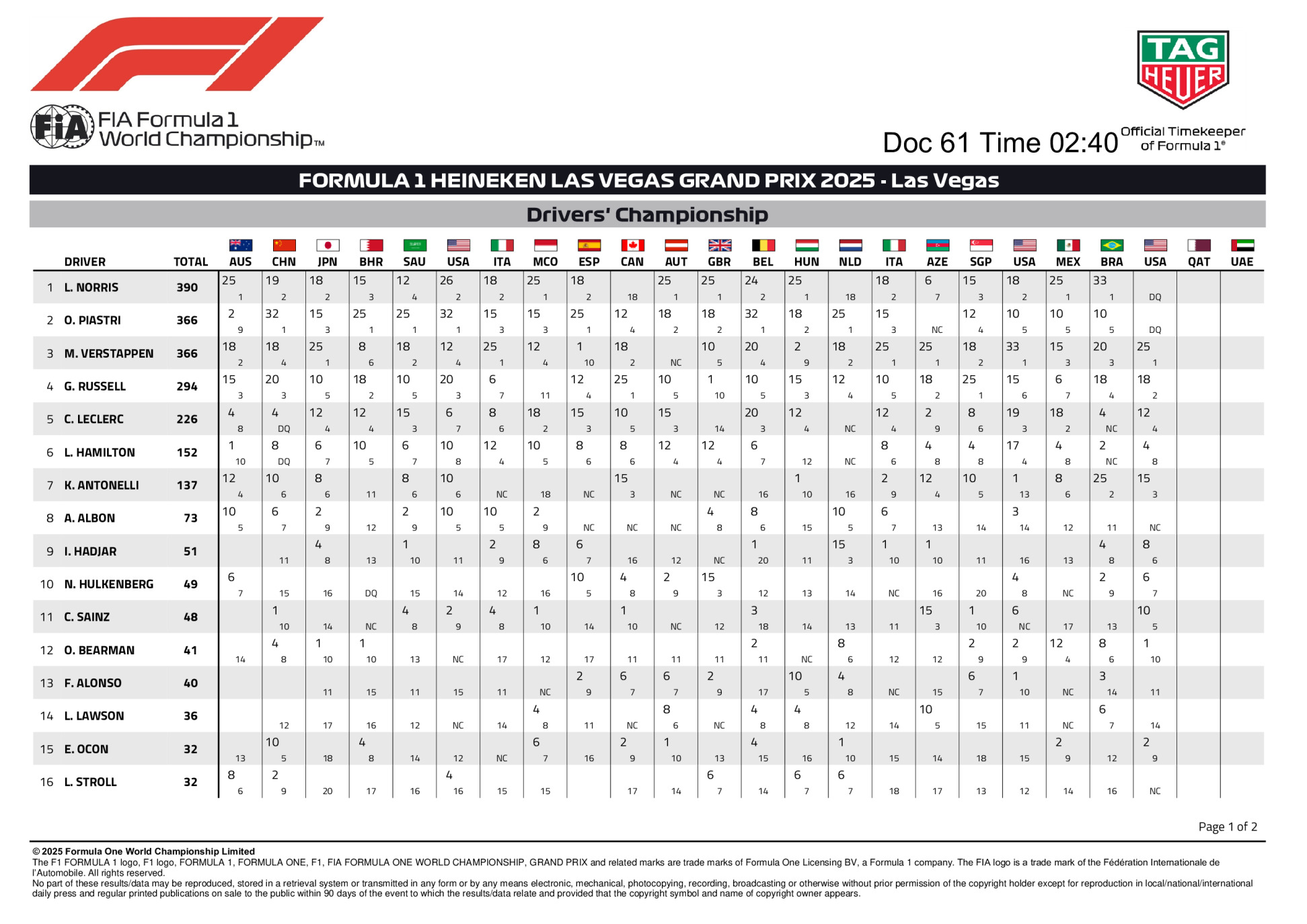 Grand Prix de Las Vegas 2025 : grille de départ définitive