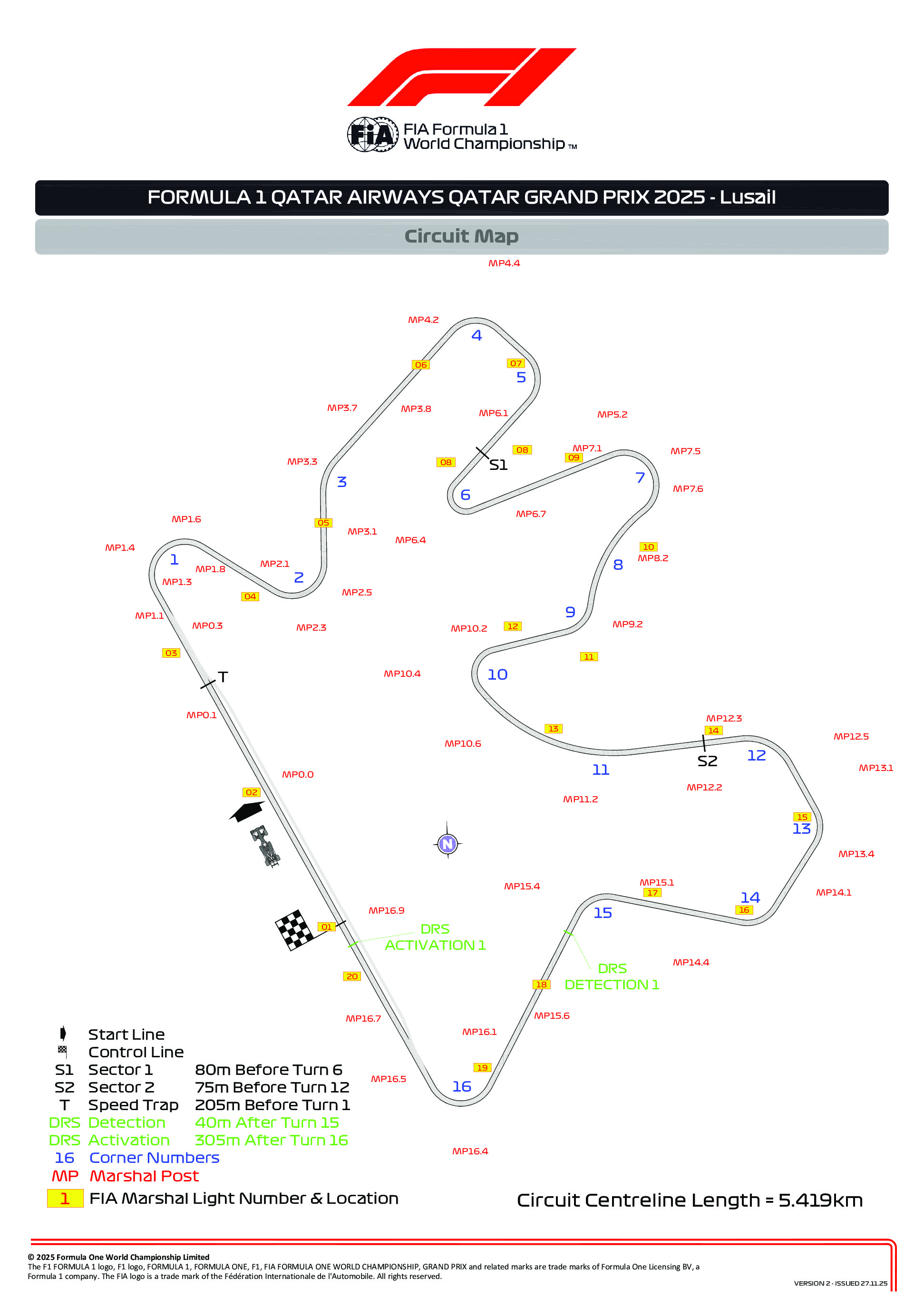 Côté DRS, rien n'évolue : la détection reste située 40 mètres après le virage 15 et l'activation intervient toujours 305 mètres après le 16.