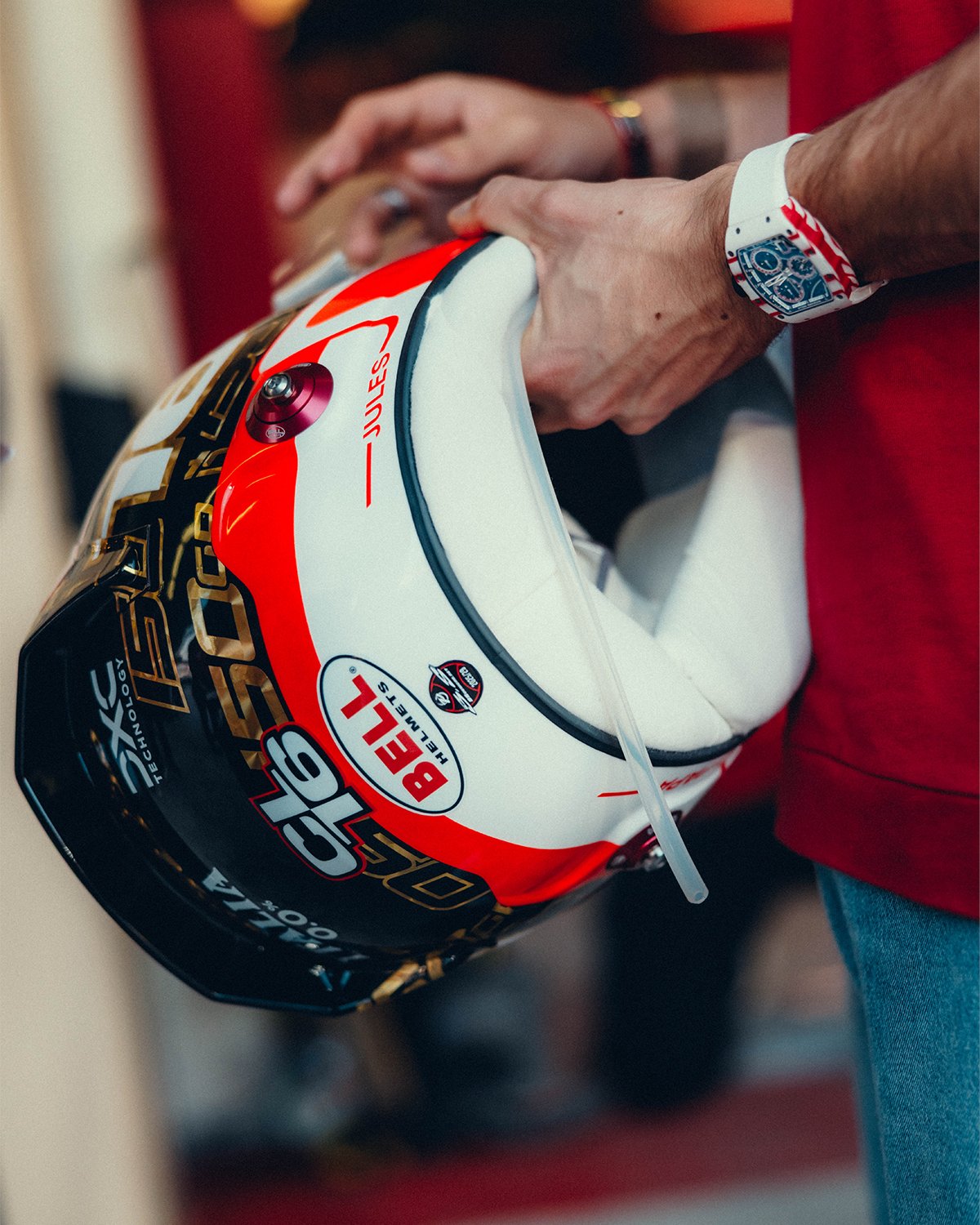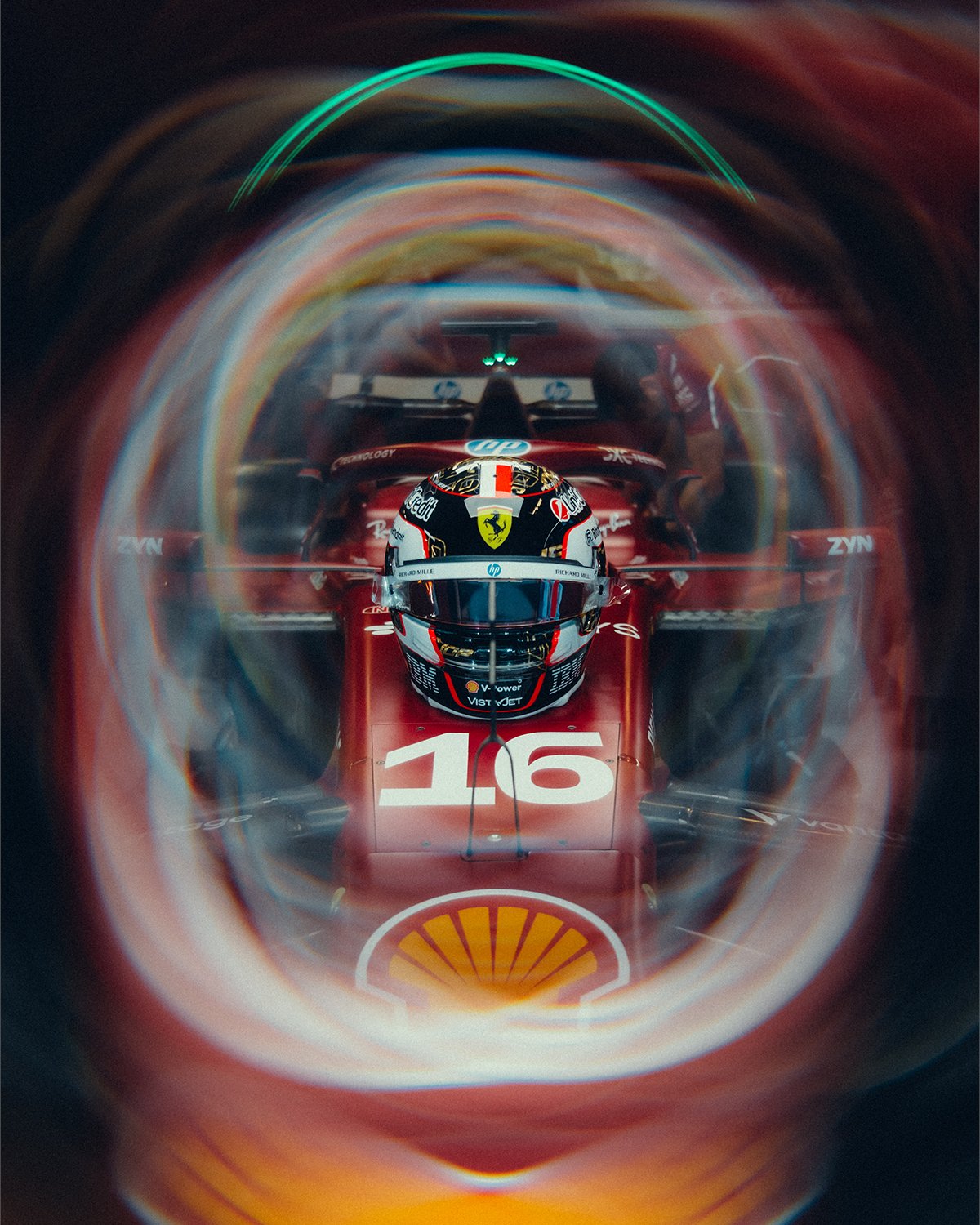 Pour fêter ses 150 Grands Prix de F1 avec la Scuderia Ferrari, Charles Leclerc a un casque spécial pendant le week-end à Abou Dabi, dernier de la saison 2025.