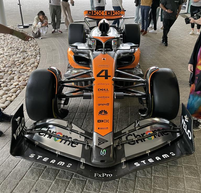 Les pilotes McLaren avec la livrée Chrome et sa combi spéciale pour Silverstone.