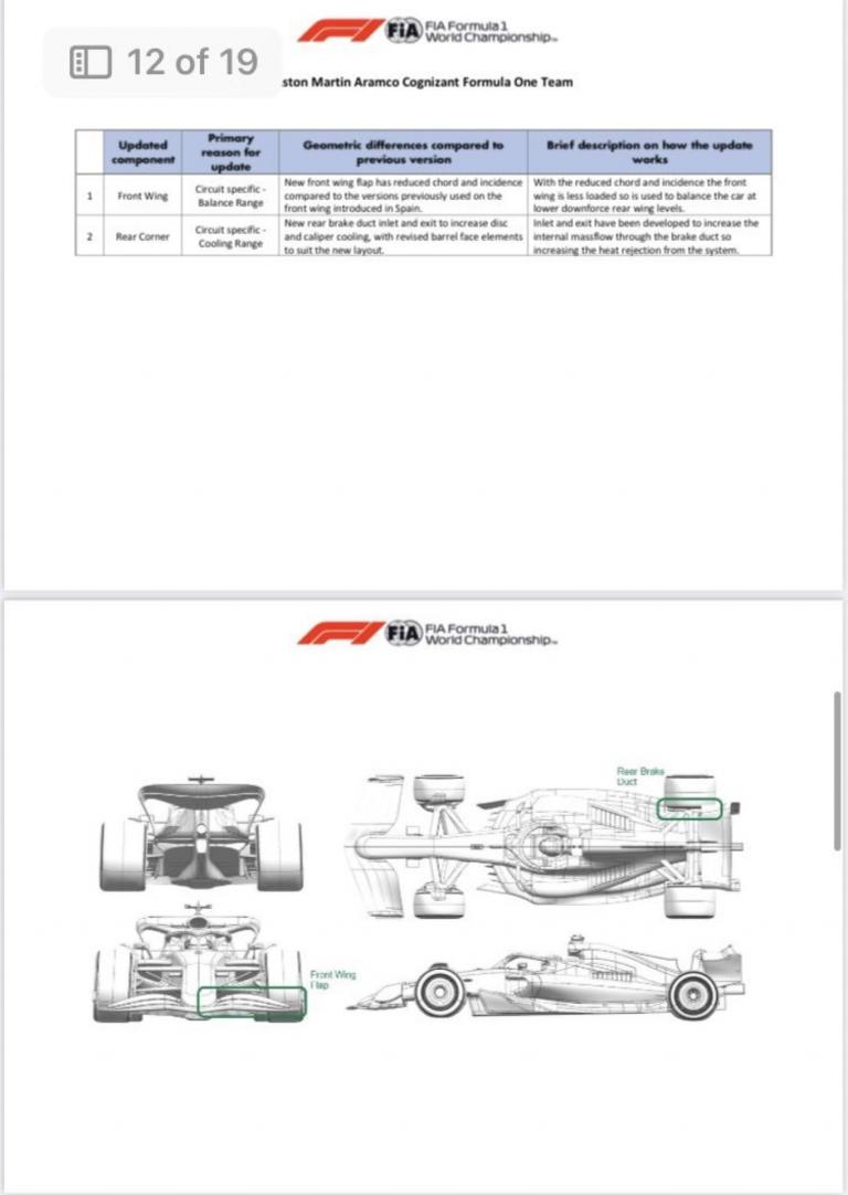 - Aston Martin : modifs spécifiques au circuit avec un aileron avant et des écopes de freins arrière inédits.
