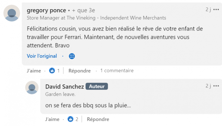 Si on avait encore des doutes sur le départ de Sanchez de la Scuderia Ferrari, le principal intéressé s'est exprimé sur son profil LinkedIn.