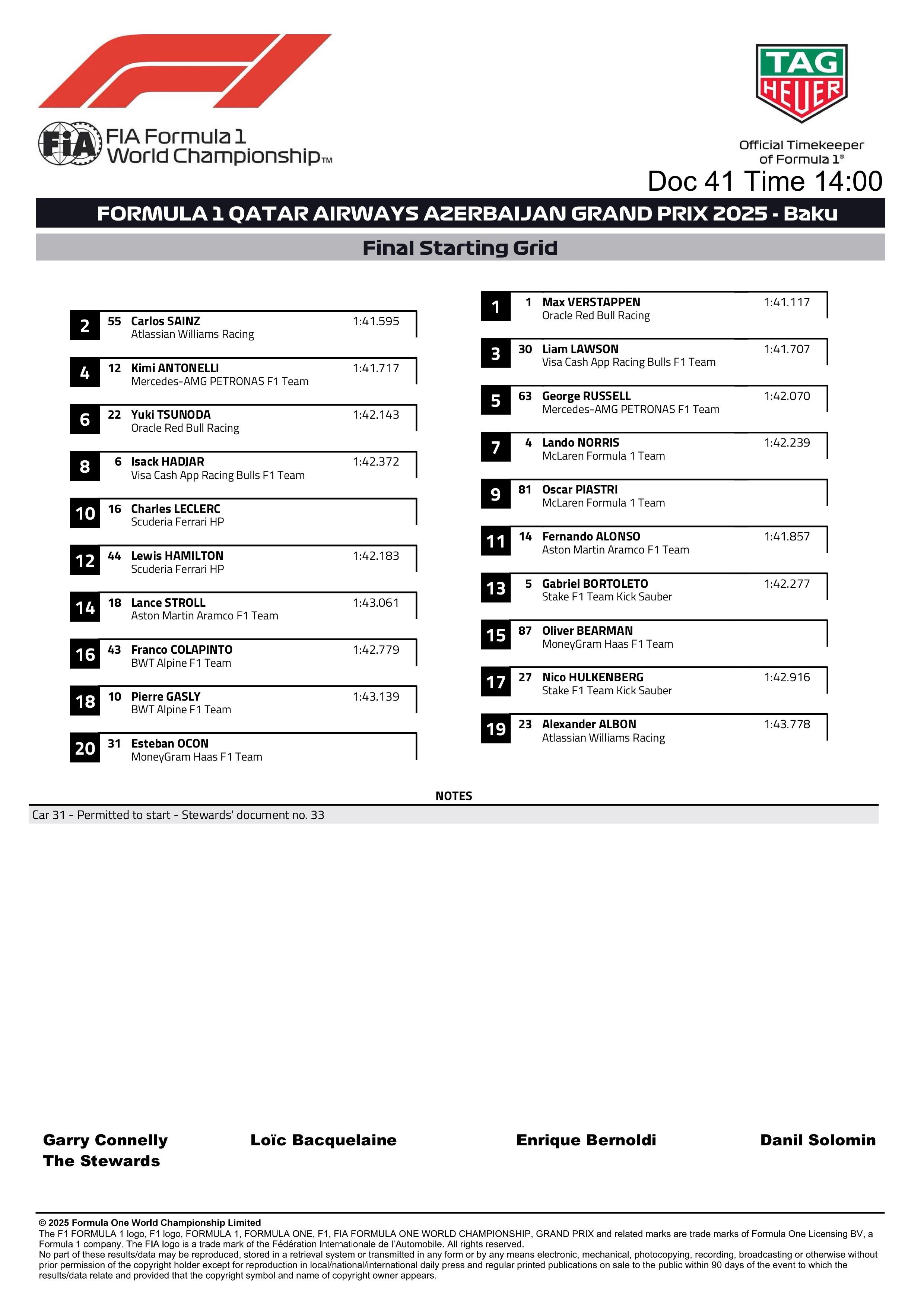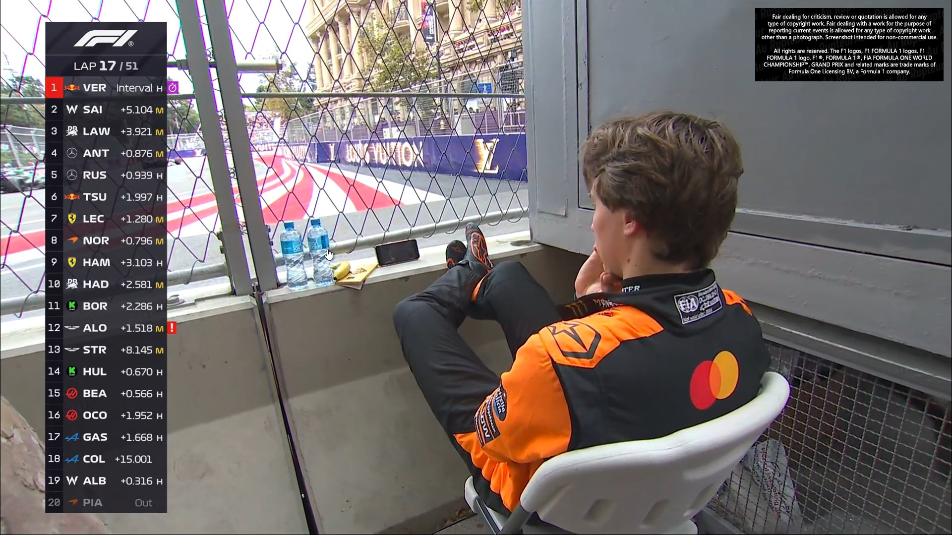 Ainsi, si les bases stratégiques semblent claires – une course à un arrêt privilégiant l'enchaînement medium>dur –, les spécificités de Bakou, entre risques de neutralisation, météo instable et forte évolution de piste, laissent entrevoir une multitude de scénarios. Les pilotes partis en retrait, comme Norris, Piastri ou Leclerc, auront tout intérêt à miser sur ces variables pour inverser la hiérarchie.