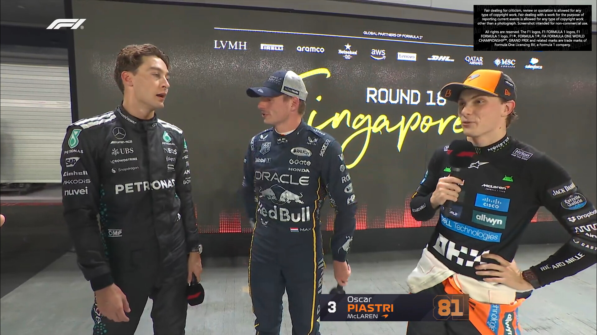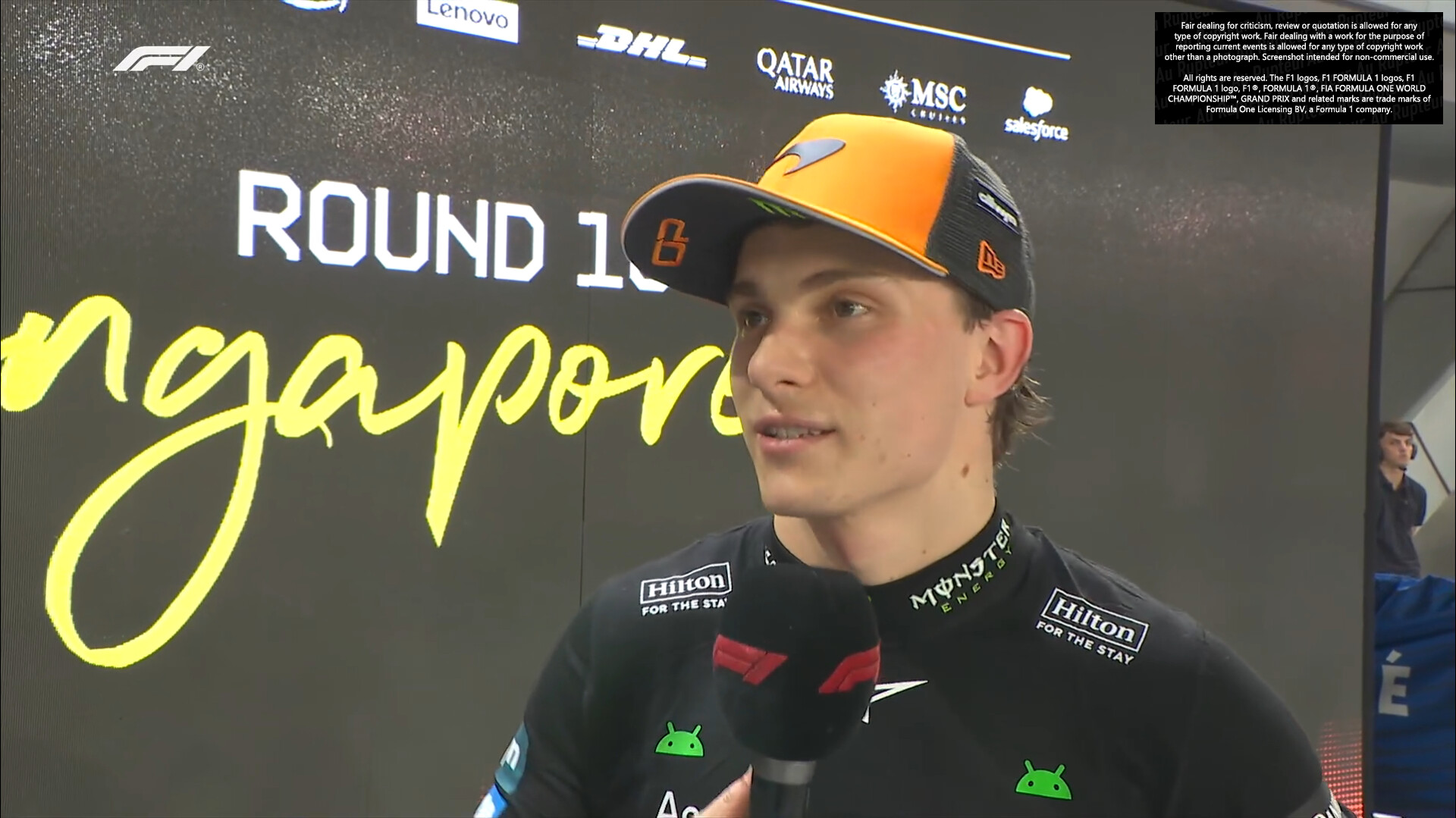 Hear from Oscar Piastri over the radio after the first lap contact with teammate Lando Norris 📻#F1 #SingaporeGP pic.twitter.com/SlMB4HgB06