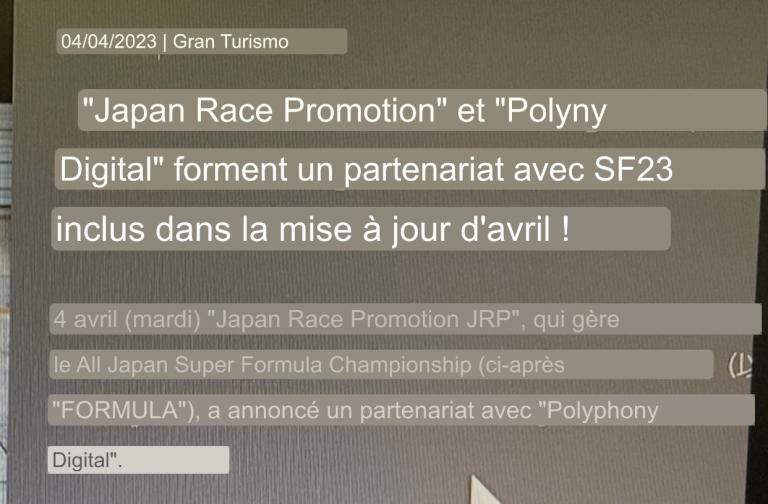 La nouvelle Dallara SF23 de Super Formula qui devrait débarquer dans GT7 pour le 4 avril.