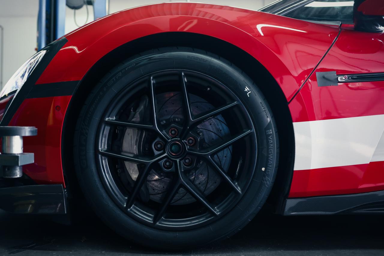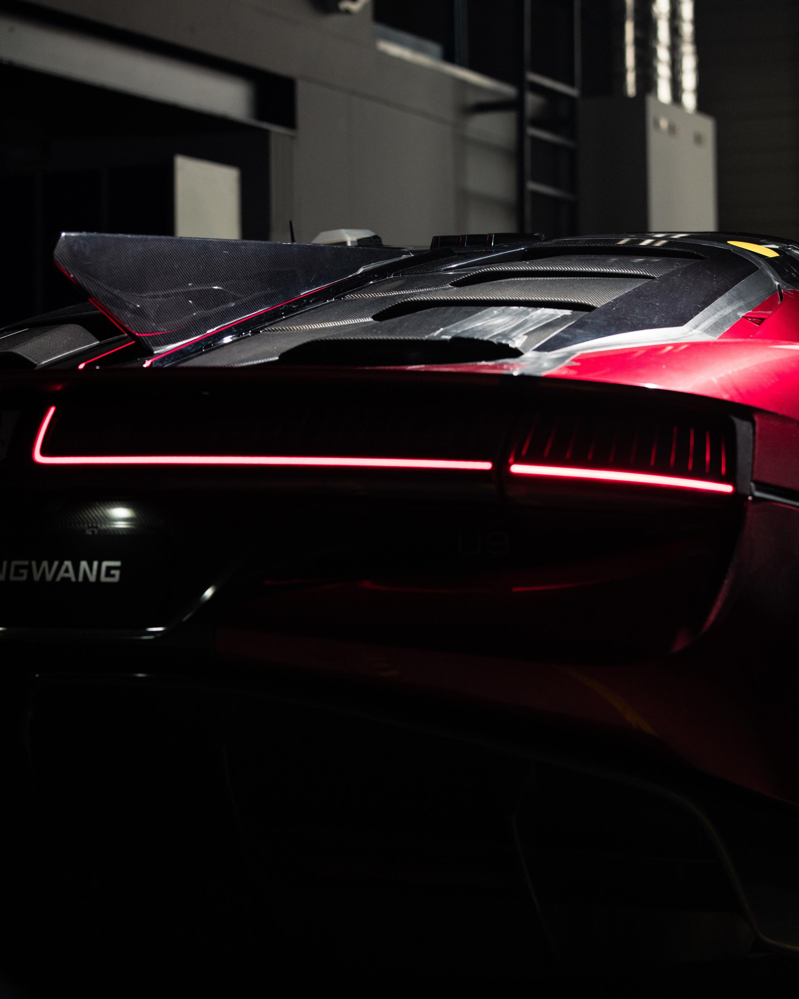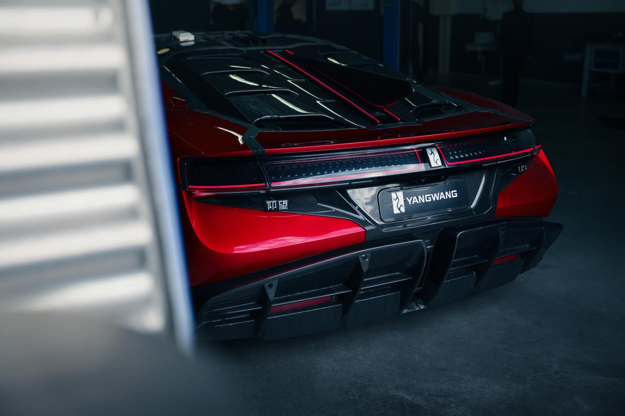 Connue d'abord sous le nom de U9 Track/Special Edition, la voiture est désormais officiellement baptisée YANGWANG U9 Xtreme (ou U9X). Elle repose sur l'architecture de la U9 de série vendue en Chine, mais en repousse toutes les limites. La tension du système passe de 800 à 1200 V, la batterie Blade (lithium-fer-phosphate) affiche un taux de décharge exceptionnel de 30 C, et les quatre moteurs tournant à 30 000 tr/min délivrent ensemble plus de 3 000 ch. Les pneumatiques semi-slicks et la suspension active DiSus-X ont été spécifiquement recalibrés pour supporter les contraintes du circuit.