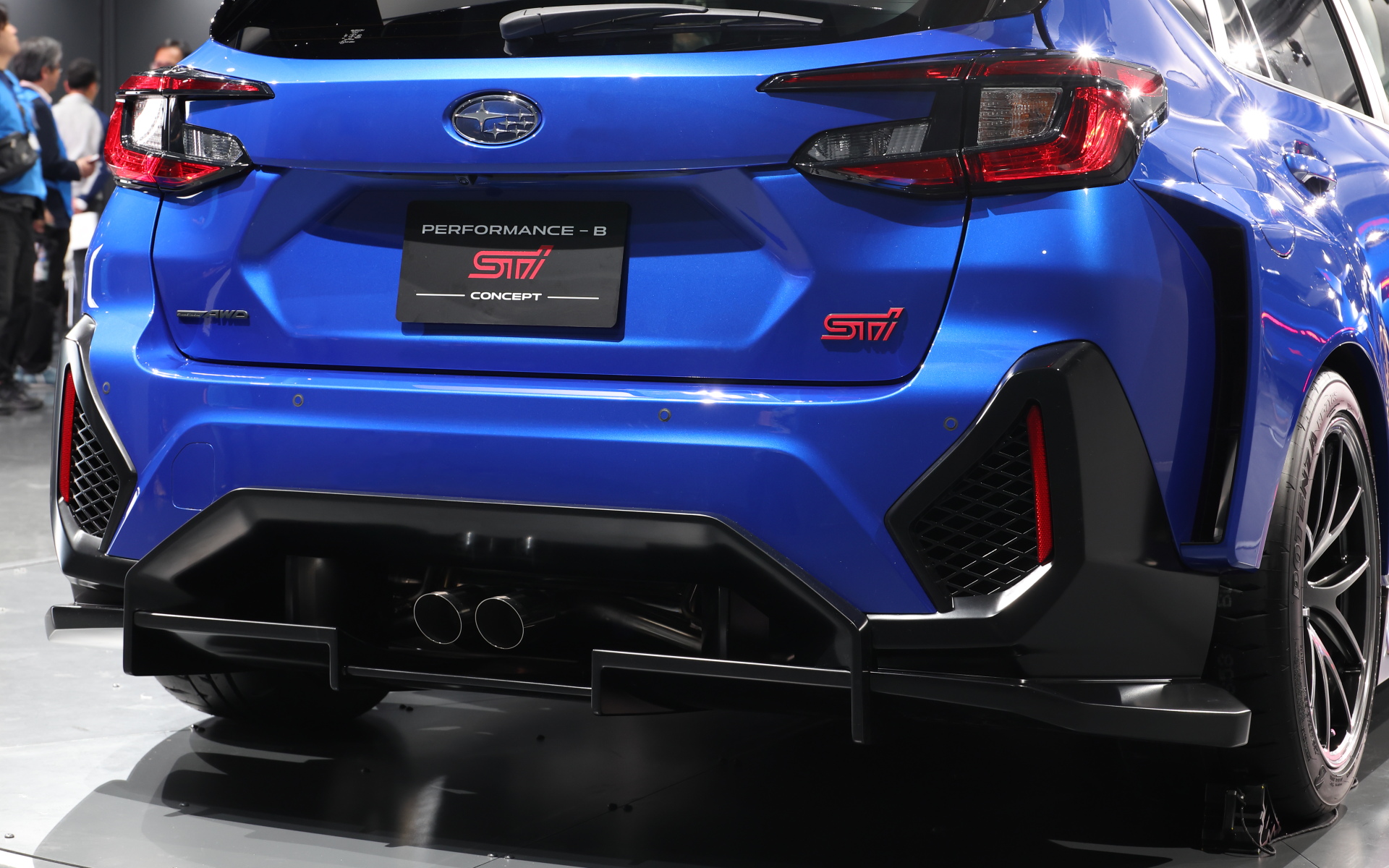 Conçue sur la base d'un Crosstrek, la Performance-B STI Concept adopte une carrosserie cinq portes, un capot percé d'une large prise d'air "Proud of Boxer" ("fier du boxer", le moteur emblématique de Subaru), un diffuseur central à double sortie et un immense aileron arrière. À bord, la présentation reste proche d'une WRX actuelle, avec un grand écran vertical et un levier de vitesses bien présent. Subaru évoque un moteur boxer turbo de forte puissance, probablement le 2,4 litres de la WRX, sans confirmer sa configuration finale.