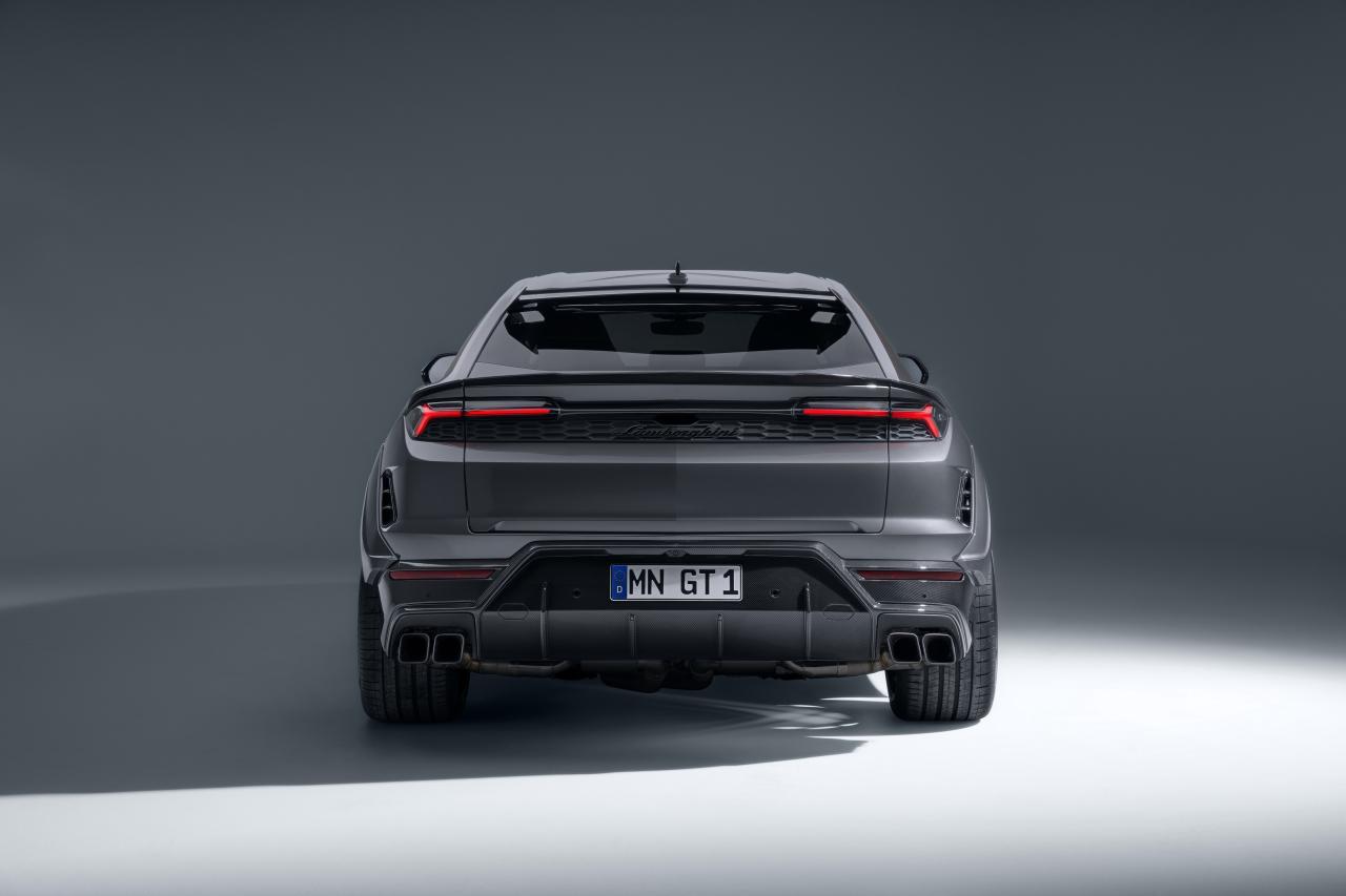 Novitec s'attaque à l'Urus SE avec un kit ESTESO qui mise avant tout sur l'apparence et la présence visuelle. Le SUV hybride rechargeable de Lamborghini conserve son groupe motopropulseur d'origine, fort de 800 ch et 950 Nm, sans annonce de gain mécanique ni de modification châssis significative. La préparation repose principalement sur une carrosserie élargie de dix centimètres à l'avant et douze à l'arrière, des éléments en carbone apparent et des jantes forgées de 23 pouces développées avec Vossen, montées en 285/35 et 325/30. Un module électronique permet d'abaisser la hauteur de caisse de 25 mm, mais l'essentiel du travail reste esthétique.