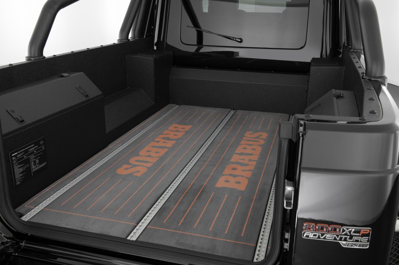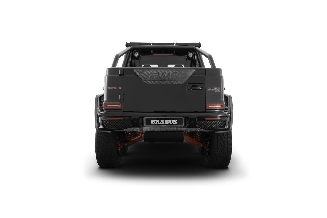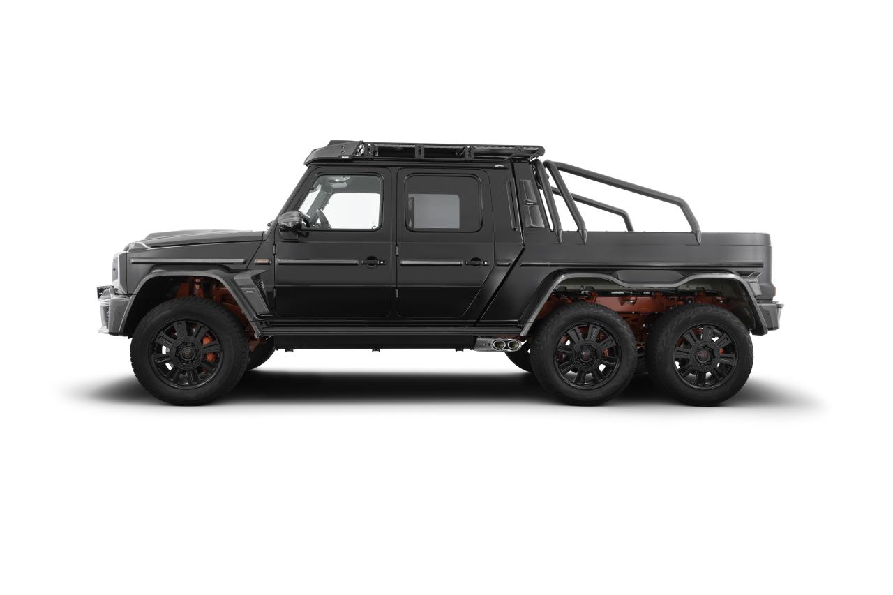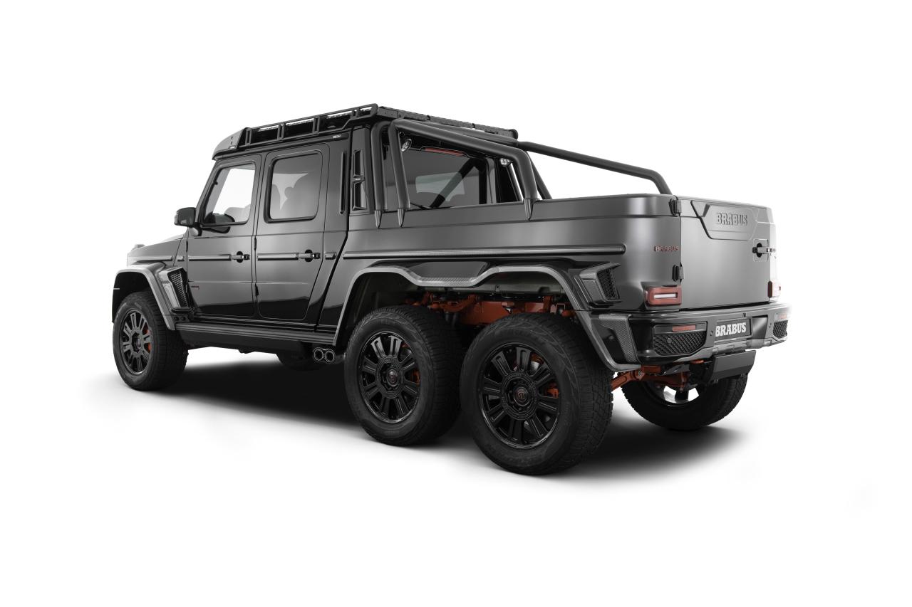 Le Brabus XLP 800 6x6 Adventure est un pick-up dérivé de la Mercedes-AMG G 63 (W 465), équipé d’un V8 4,0 litres biturbo développant 800 ch et 1 000 Nm. Doté de trois essieux à portiques et d’une garde au sol de 47 cm, il atteint 100 km/h en 5,8 s et 210 km/h. Long de 6,23 m, il reçoit une benne en acier et carbone, des jantes Monoblock HD de 22 pouces chaussées en 325/55 R 22, ainsi qu’un habitacle Masterpiece mêlant cuir noir et inserts carbone.
