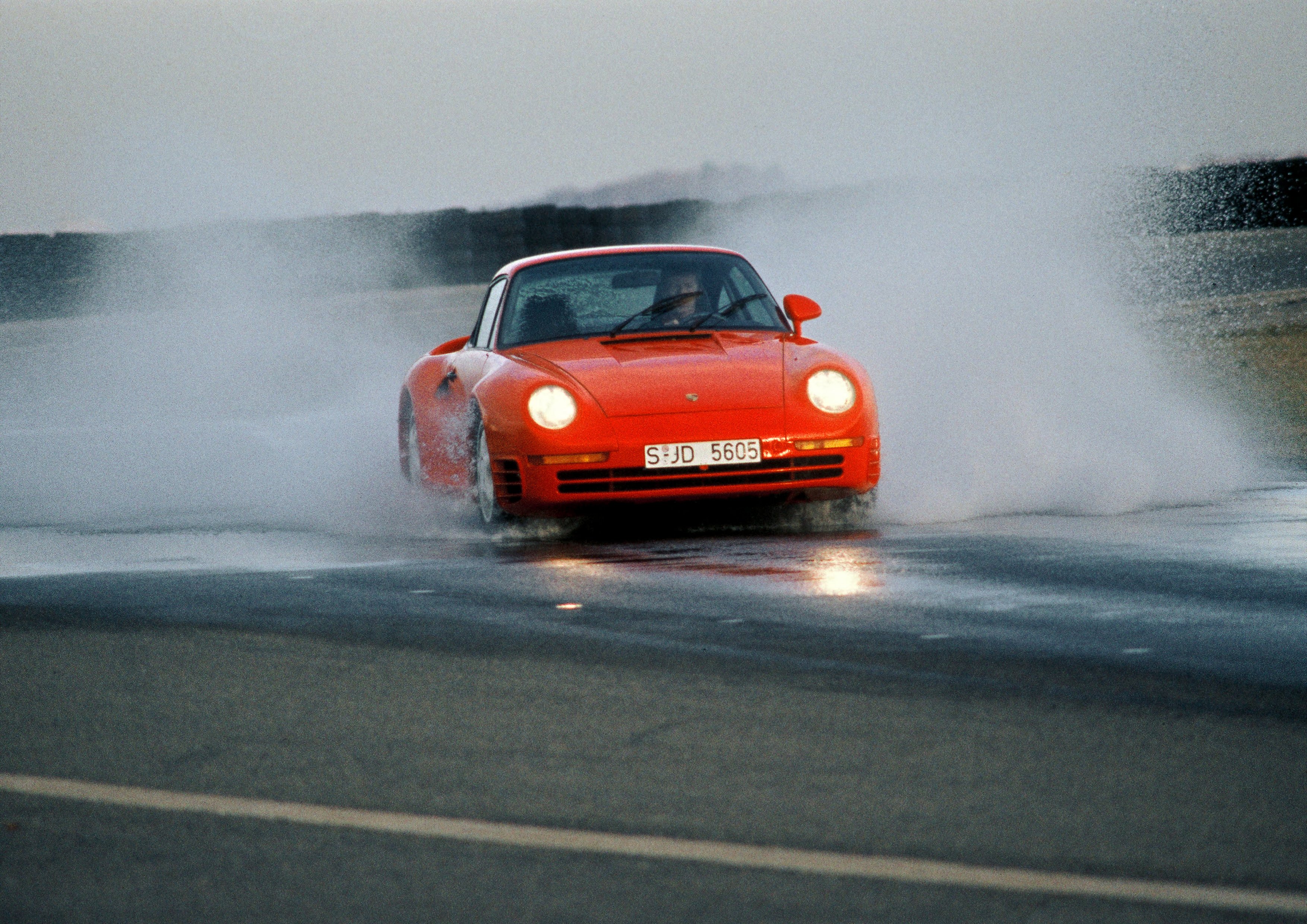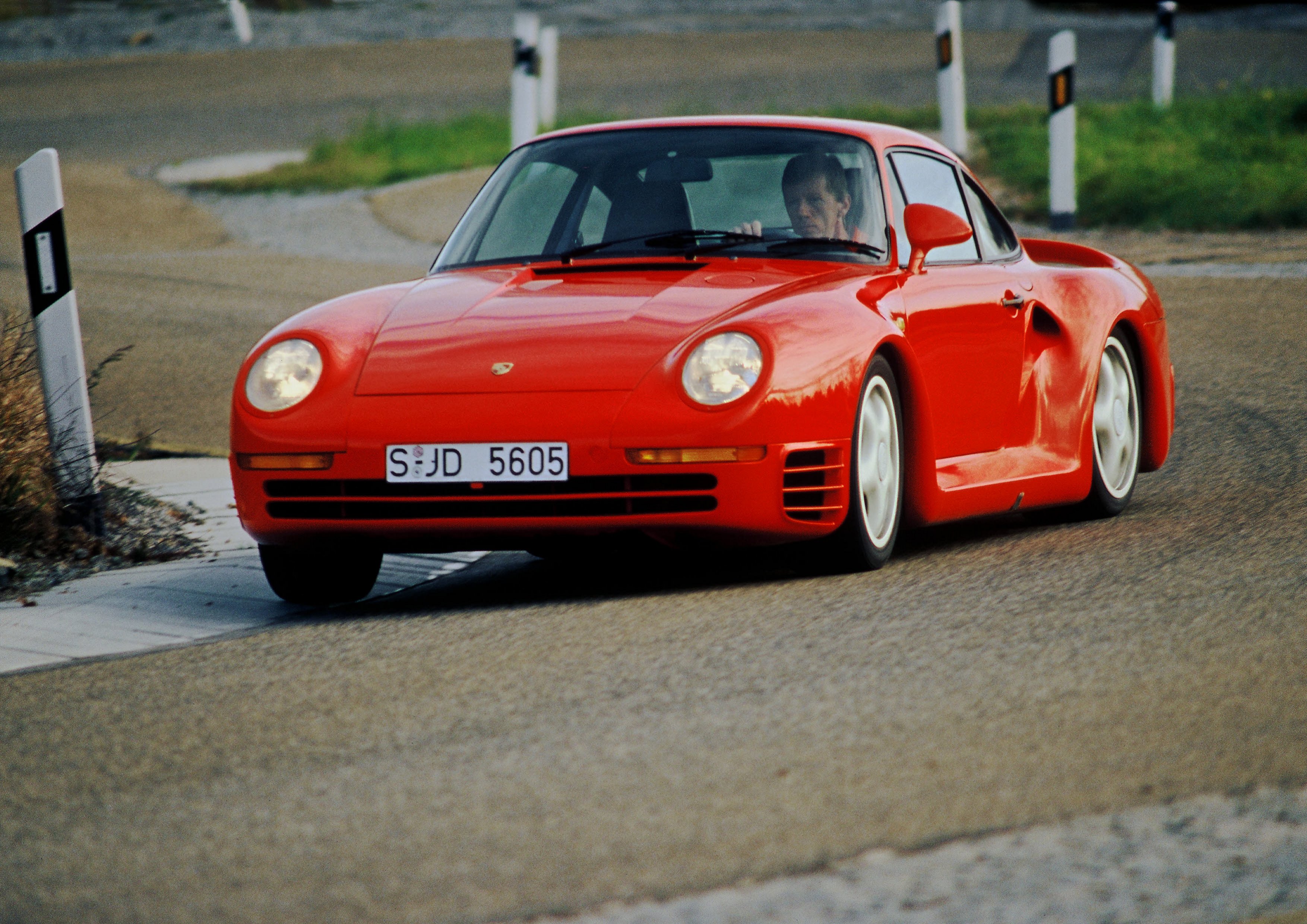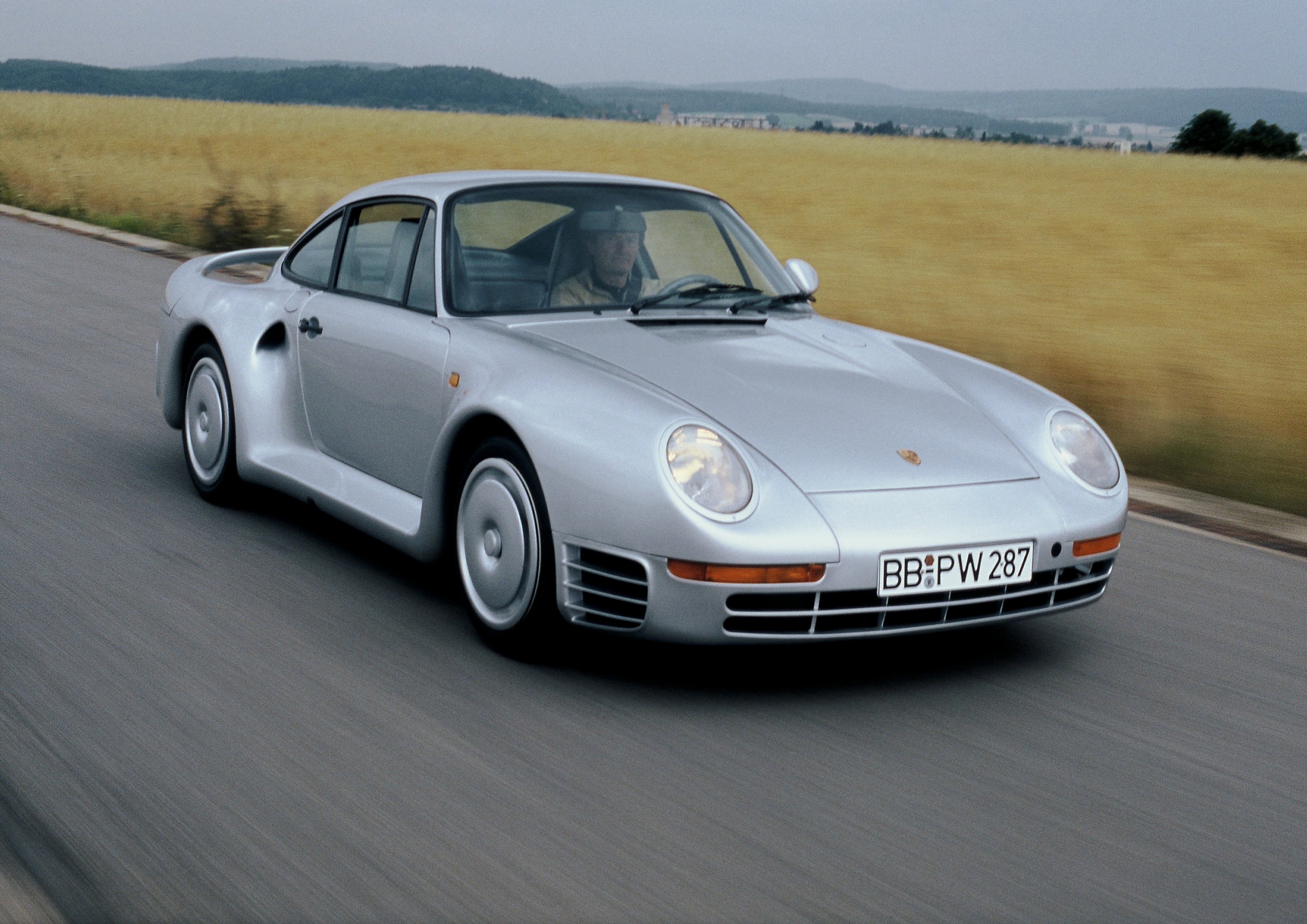 La Porsche 959, produite entre 1986 et 1989 à seulement 292 exemplaires, est l’une des supercars les plus emblématiques des années 1980. Dotée d’un six-cylindres à plat 2,85 litres biturbo développant 450 ch et 500 Nm de couple, elle fut la voiture de série la plus rapide de son époque, atteignant 317 km/h et abattant le 0 à 100 km/h en 3,7 secondes. Sa transmission intégrale sophistiquée, son aérodynamique avancée et sa suspension pilotée en faisaient une vitrine technologique, directement inspirée par le programme Porsche 956/962 en endurance et les rallyes du Groupe B.
