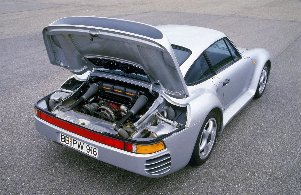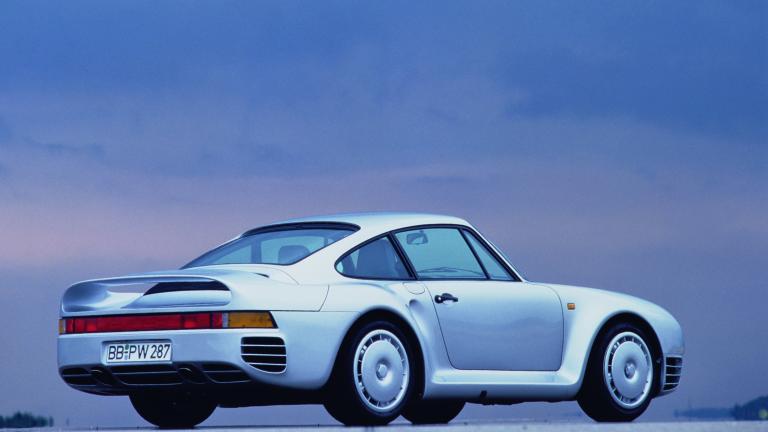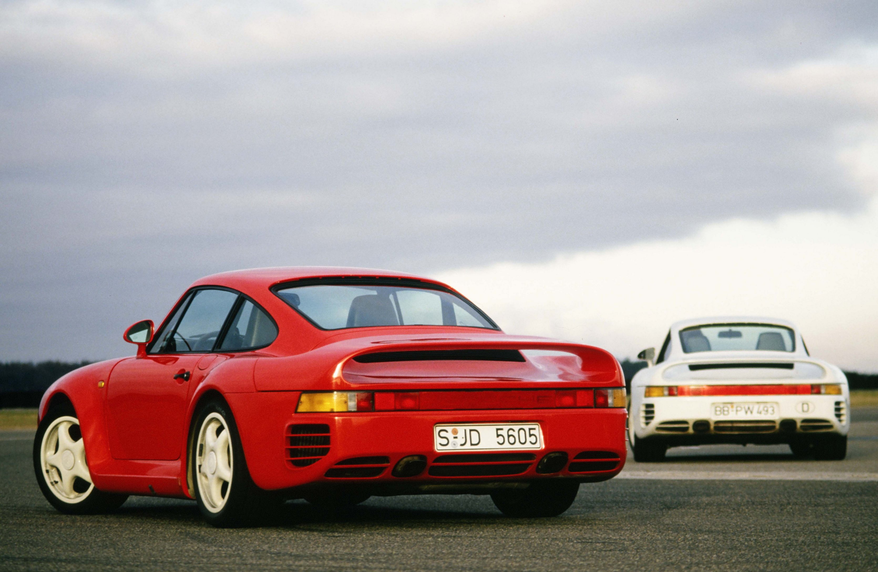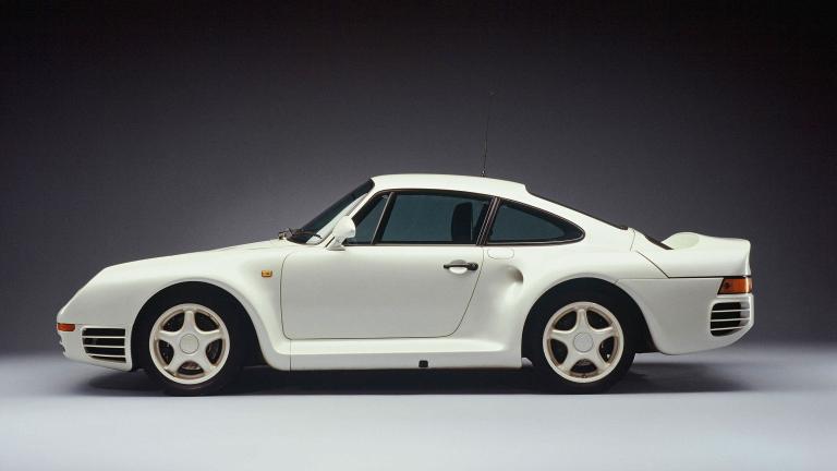 La Porsche 959, produite entre 1986 et 1989 à seulement 292 exemplaires, est l’une des supercars les plus emblématiques des années 1980. Dotée d’un six-cylindres à plat 2,85 litres biturbo développant 450 ch et 500 Nm de couple, elle fut la voiture de série la plus rapide de son époque, atteignant 317 km/h et abattant le 0 à 100 km/h en 3,7 secondes. Sa transmission intégrale sophistiquée, son aérodynamique avancée et sa suspension pilotée en faisaient une vitrine technologique, directement inspirée par le programme Porsche 956/962 en endurance et les rallyes du Groupe B.