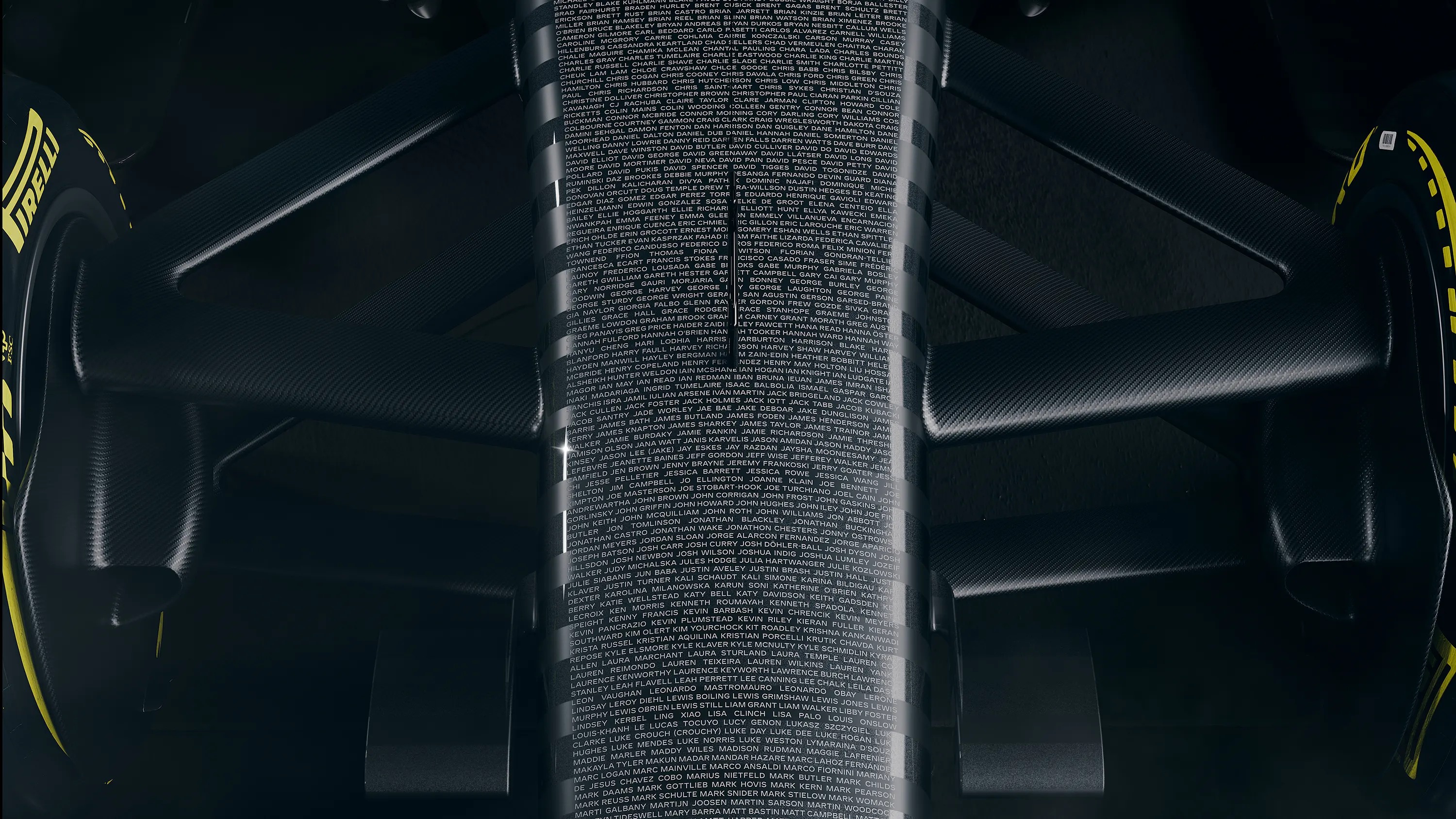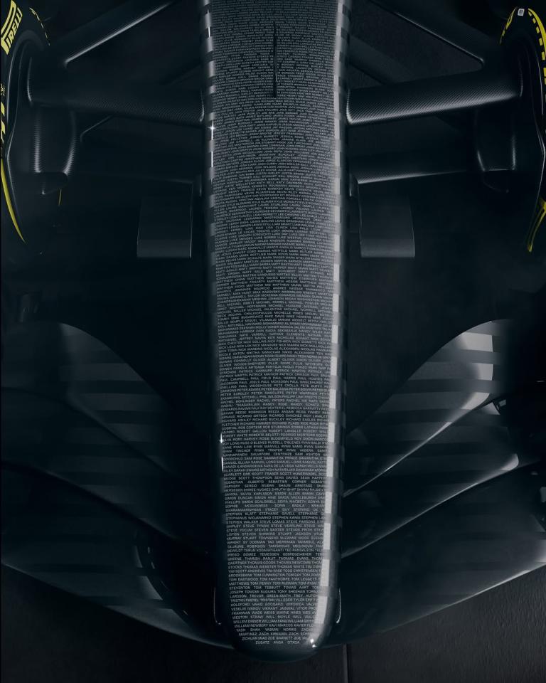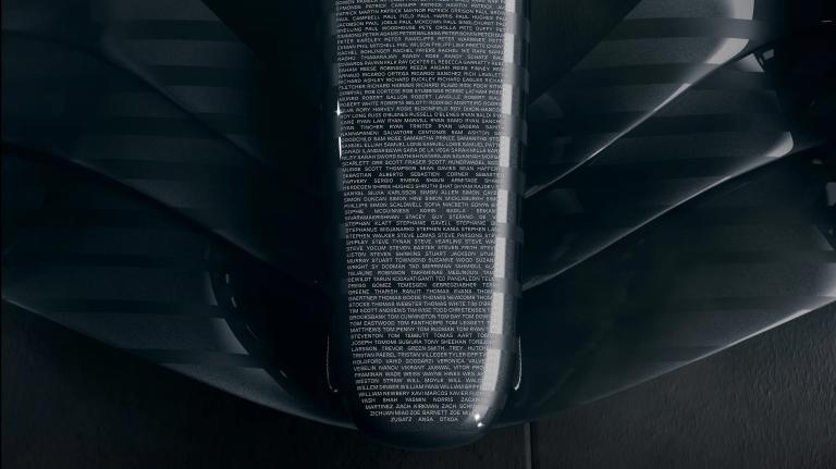 Particularité symbolique : le design intègre les noms des membres fondateurs de l'équipe, côté américain comme britannique, soulignant la dimension transatlantique du projet.