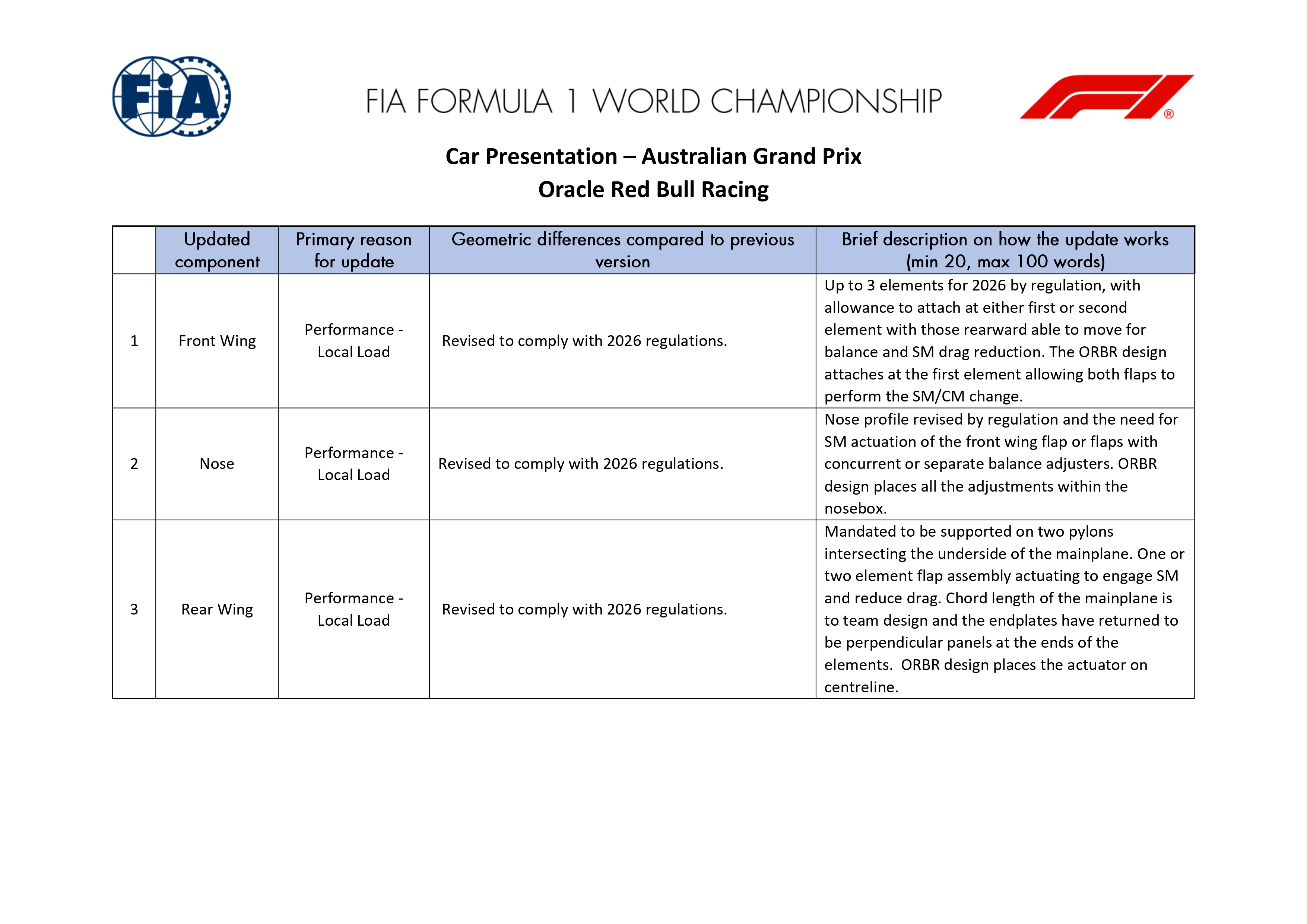 Retour aux Brefs F1Red Bull introduit trois évolutions sur la RB22 pour l'ouverture de la saison 2026 à Melbourne. L'équipe de Milton Keynes indique que ces modifications concernent l'aileron avant, le nez et l'aileron arrière, l'ensemble ayant été revu afin de répondre aux nouvelles exigences réglementaires tout en augmentant la charge aérodynamique générée par ces éléments.