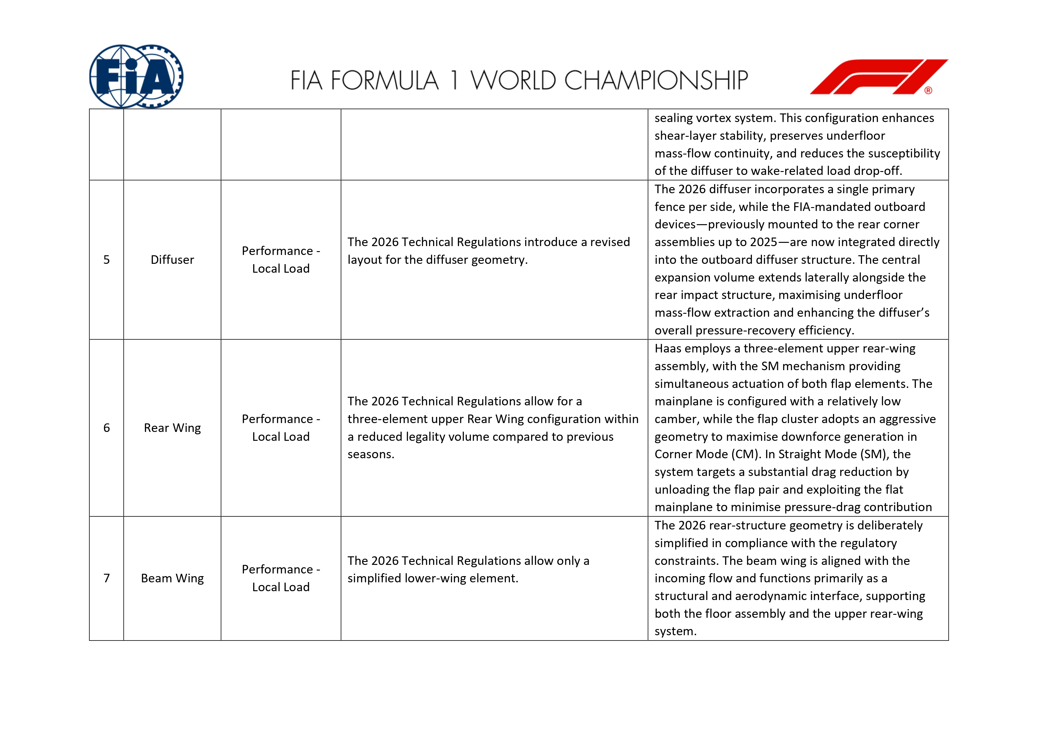 Le diffuseur a lui aussi été repensé dans le cadre du règlement 2026. Il adopte une configuration comportant une cloison principale par côté, tandis que les dispositifs externes auparavant montés sur les assemblages de coin arrière sont désormais intégrés directement dans la structure externe du diffuseur. Le volume d'expansion central s'étend latéralement le long de la structure d'impact arrière afin de maximiser l'extraction du flux provenant du plancher et d'améliorer l'efficacité globale de récupération de pression du diffuseur.