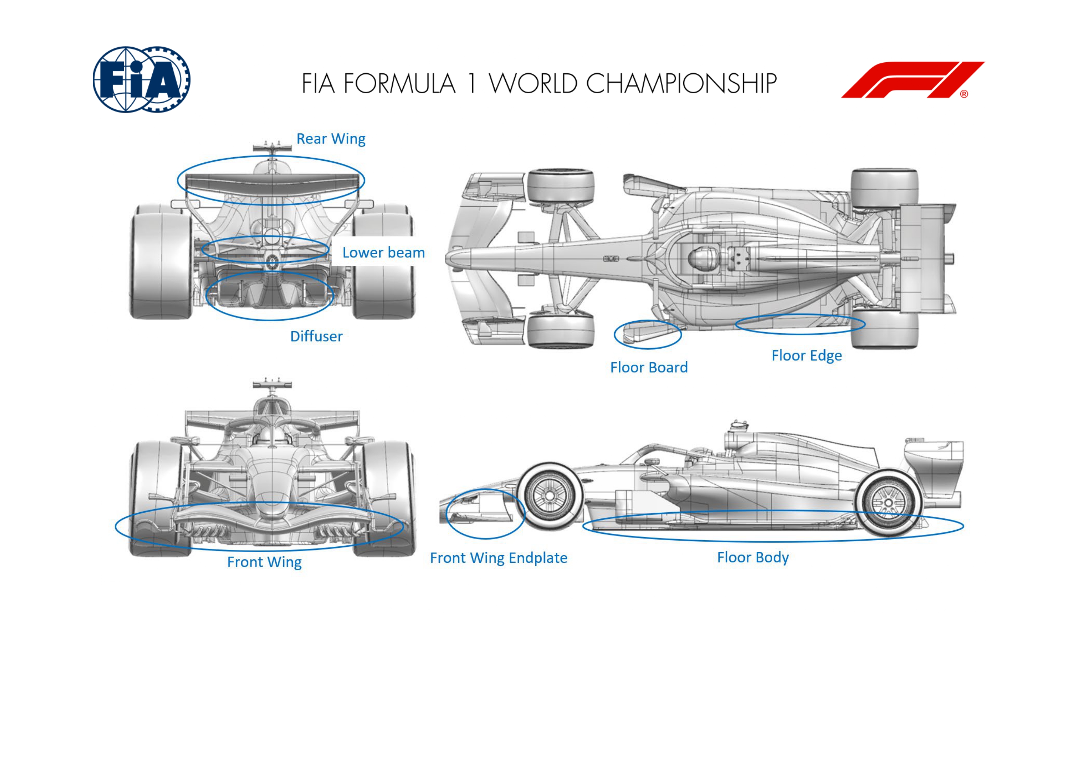 Les plaques d'extrémité de l'aileron avant ont également été redessinées. Leur conception vise à optimiser la gestion du sillage des pneumatiques avant, notamment grâce à l'intégration d'un déflecteur positionné en hauteur ainsi que d'une semelle inférieure canalisée. Cette architecture permet d'améliorer le conditionnement local des flux et d'optimiser l'écoulement aérodynamique en aval.