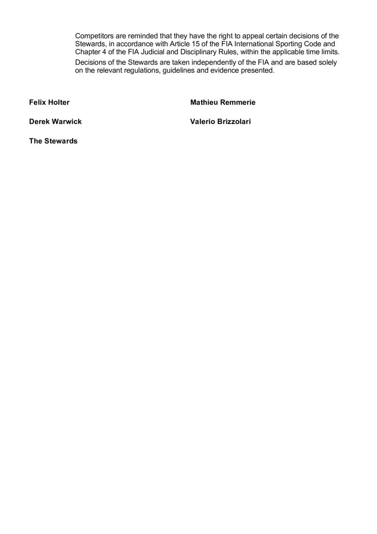 Les commissaires ont entendu le pilote de la voiture n°6 (Isack Hadjar), le pilote de la voiture n°12 (Kimi Antonelli), des représentants des deux équipes et ont examiné les données du système de positionnement et de signalisation, ainsi que des vidéos et images embarquées.