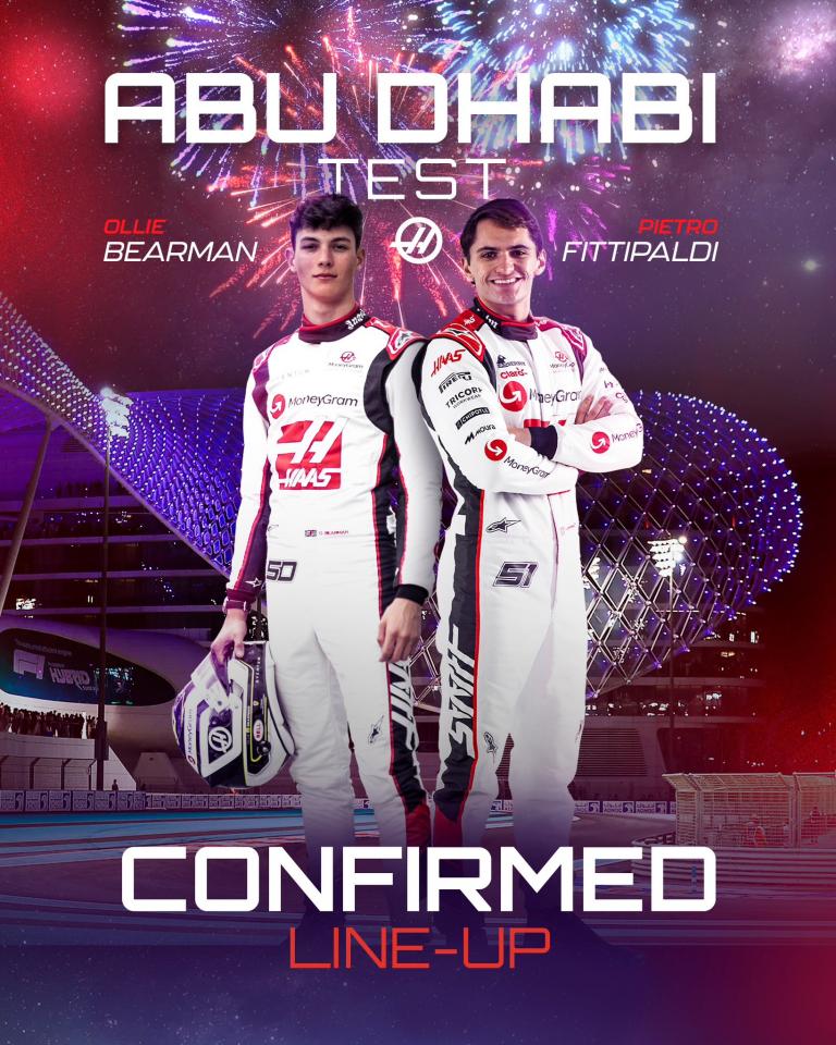Pietro Fittipaldi, pilote d'essai et de réserve officiel de l'équipe MoneyGram Haas F1, ainsi qu'Oliver Bearman, pilote de la Ferrari Driver Academy (FDA), représenteront l'équipe américaine lors du test de fin de saison, le 28 novembre, sur le circuit de Yas Marina.