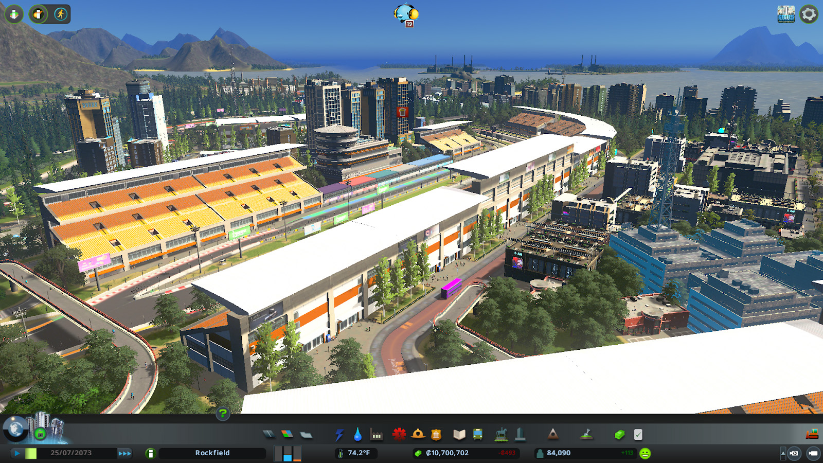 Les tribunes, déclinées en plusieurs tailles, influencent directement l'attractivité de l'événement et le nombre de spectateurs. Une nouvelle vue d'information dédiée aux courses et parades permet de visualiser les tracés validés, leur sens de circulation ainsi que leur attractivité. Les joueurs peuvent également planifier leurs compétitions en choisissant la catégorie (Hyper Car, Formula ou Circuit Cruisers), le nombre de tours, le niveau de l'épreuve et le prix des billets, avec un impact direct sur les coûts et l'affluence.