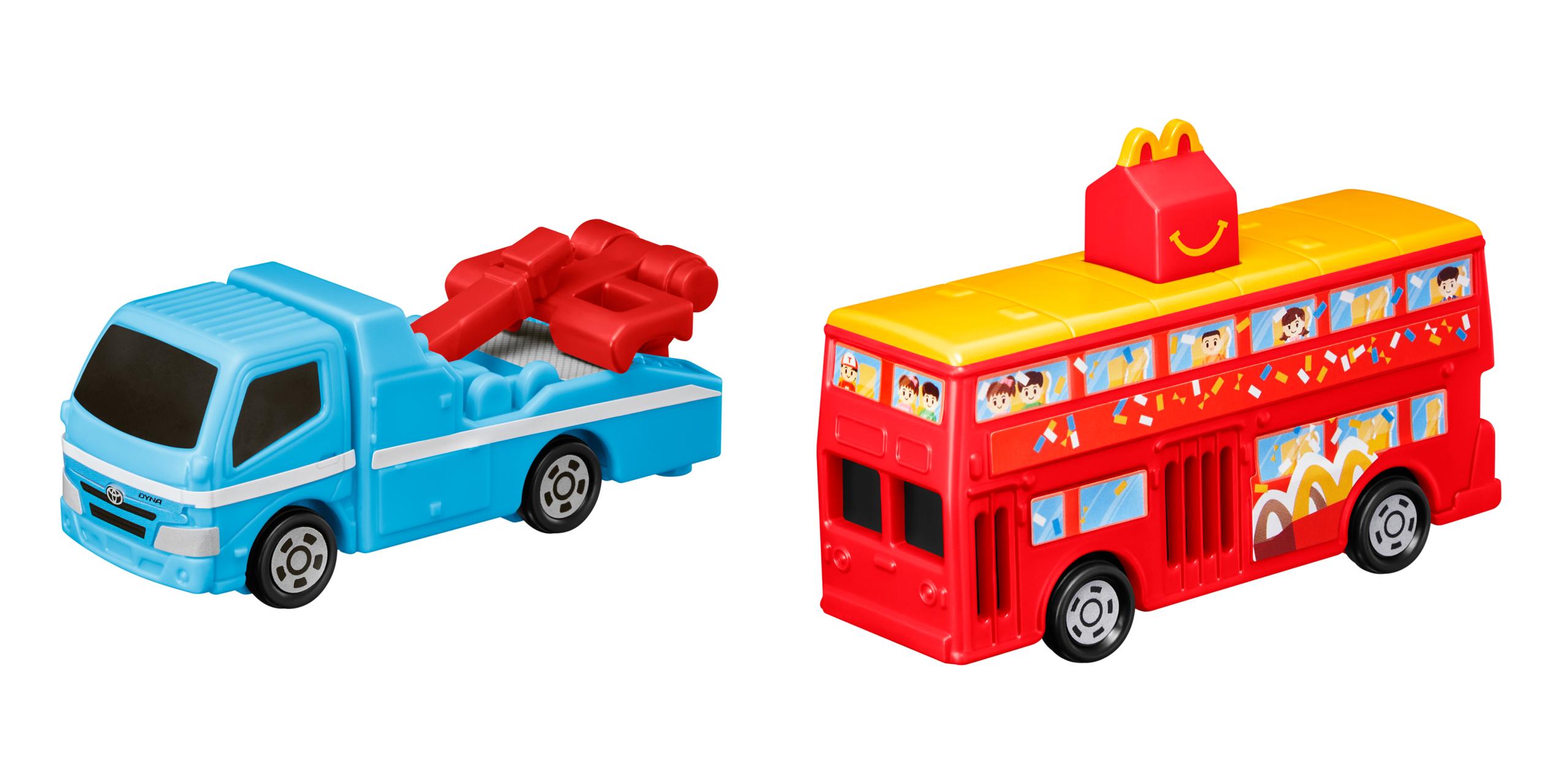 Retour aux Brefs SimuMcDonald's Japon, Toyota GAZOO Racing et Tomica remettent le couvert en 2026 avec une nouvelle campagne croisée autour des Happy Set, et cette fois, c'est la GR GT3 qui tient le rôle principal. La miniature du concept de course de Toyota sera proposée au Japon à partir du 10 avril, dans la première vague des jouets Tomica distribués avec les menus enfants, aux côtés d'un camion de pompiers Hino, d'une Nissan Skyline de patrouille et d'un Toyota TownAce transformé en hamburger car. Une seconde phase suivra du 24 avril au 7 mai, avec d'autres véhicules utilitaires, un bus Happy Meal et surtout un jouet secret qui prend la forme d'une GR GT3 dorée aux couleurs de McDonald's, dans la continuité du délire déjà aperçu l'an dernier.